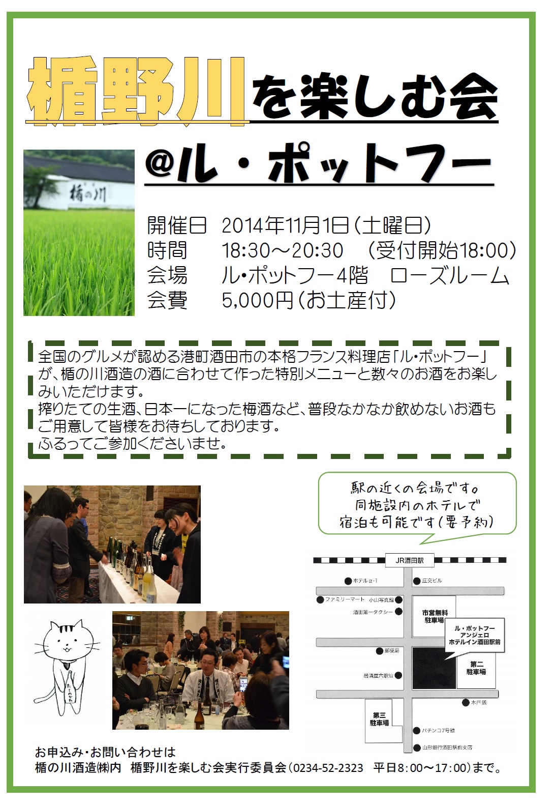 酒田駅近くのレストラン「ル・ポットフー」にて「楯野川を楽しむ会」を開催します