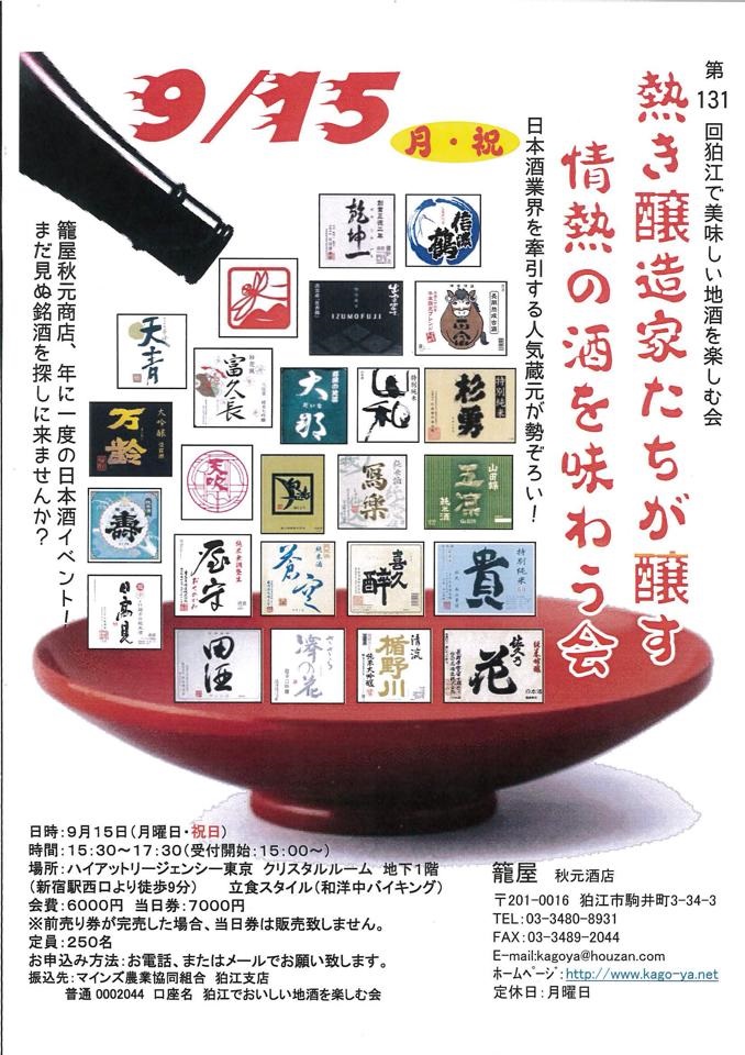籠屋秋元商店様主催のイベント参加のお知らせ