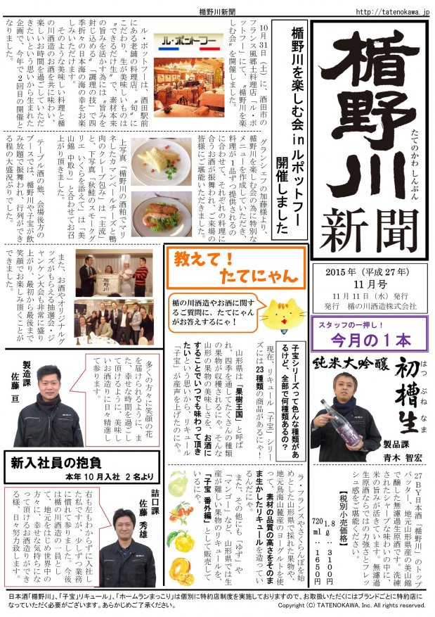 楯野川新聞2015年11月号 発行しました