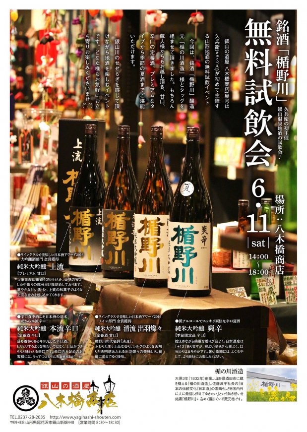 銀山温泉 八木橋商店様での試飲会のお知らせ