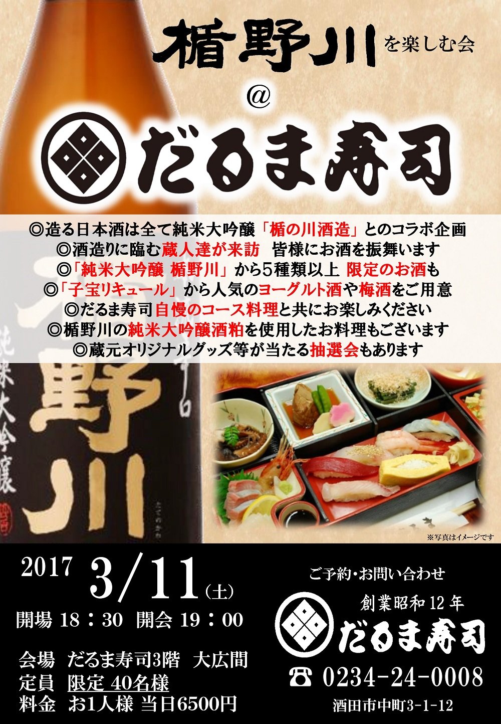 酒田市 だるま寿司 様にて「楯野川を楽しむ会@だるま寿司」を開催いたします。