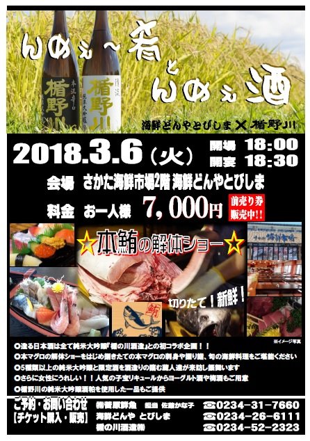 海鮮どんや とびしま 様にて「楯野川の会」を開催します