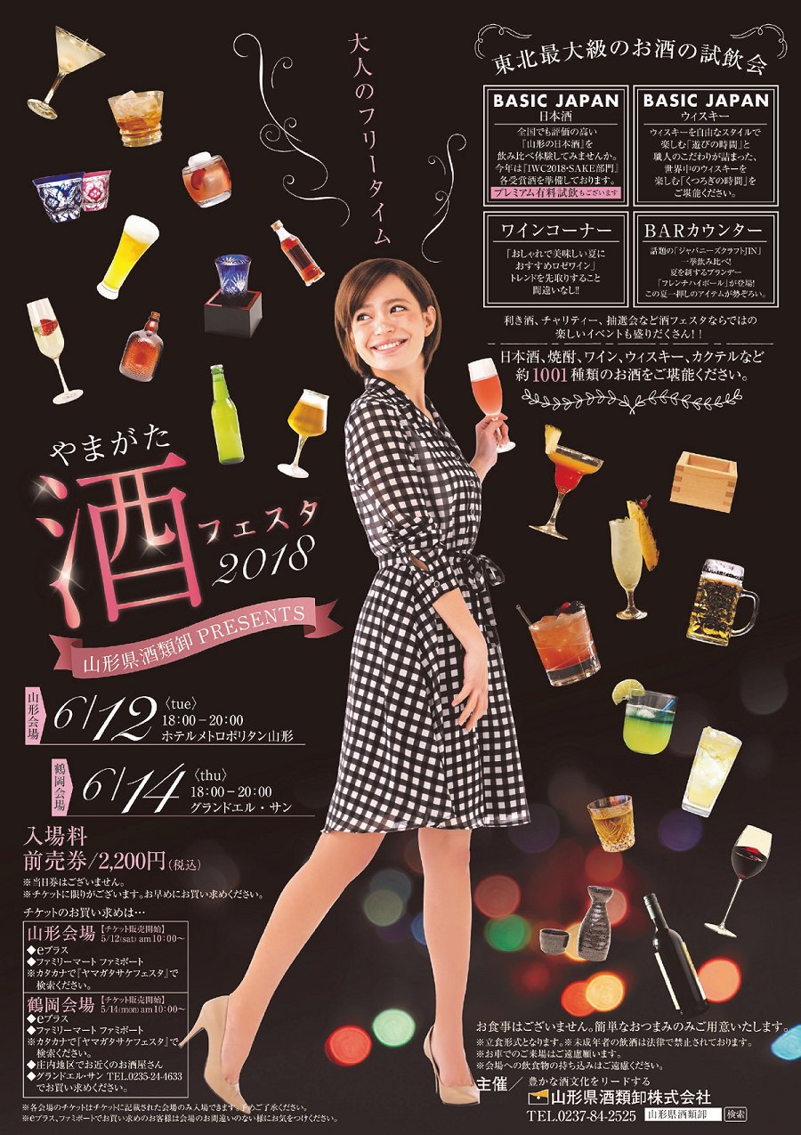 6月12日(火)山形会場場所:ホテルメトロポリタン山形時間:18:00~20:006月14日(木)鶴岡会場場所:グランドエル・サン時間:18:00~20:00入場料 2,200円(税込)※前売り券のみご購入はこちらお問い合わせ先/山形県酒類卸株式会社皆様のご来場をお待ちしております。