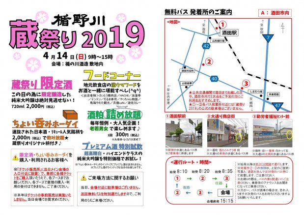 蔵祭り限定酒の販売、日本酒・リキュール 人気銘柄飲み放題、酒粕詰め放題、地元飲食店のブース出店など