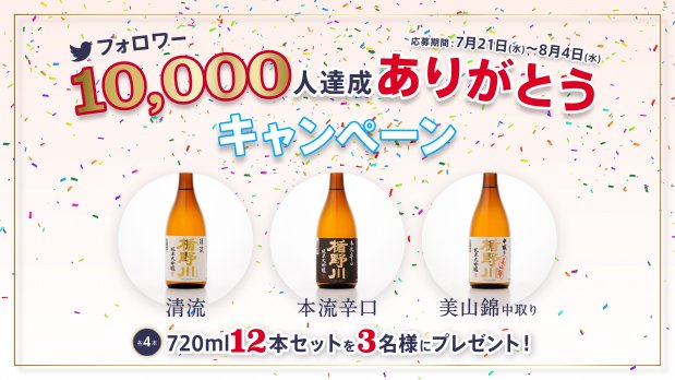 楯の川酒造公式Twitterのフォロワーが1万人を突破いたしました。これを記念し、下記の通りプレゼントキャンペーンを実施いたします。
